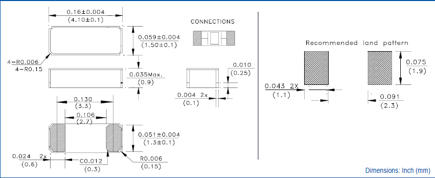 超小型石英貼片晶振晶片的設計:石英晶片的長寬尺寸已要求在±0.002mm內,由于貼片晶振晶片很小導致晶體的各類寄生波(如長度伸縮振動,面切變振動)與主振動(厚度切變振動)的耦合加強,從而造成如若石英晶體晶片的長度或寬度尺寸設計不正確、使得振動強烈耦合導致石英晶振的晶片不能正常工作,從而導致產品在客戶端不能正常使用,晶振的研發及生產超小型石英晶振完成晶片的設計特別是外形尺寸的設計是首要需解決的技術問題,公司在此方面通過理論與實踐相結合,模擬出一整套此石英晶振晶片設計的計算機程序,該程序晶振的晶片外形尺寸已全面應用并取得很好的效果.ABS09晶振,兩腳貼片晶振,ABS09-32.768KHZ-9-T晶振