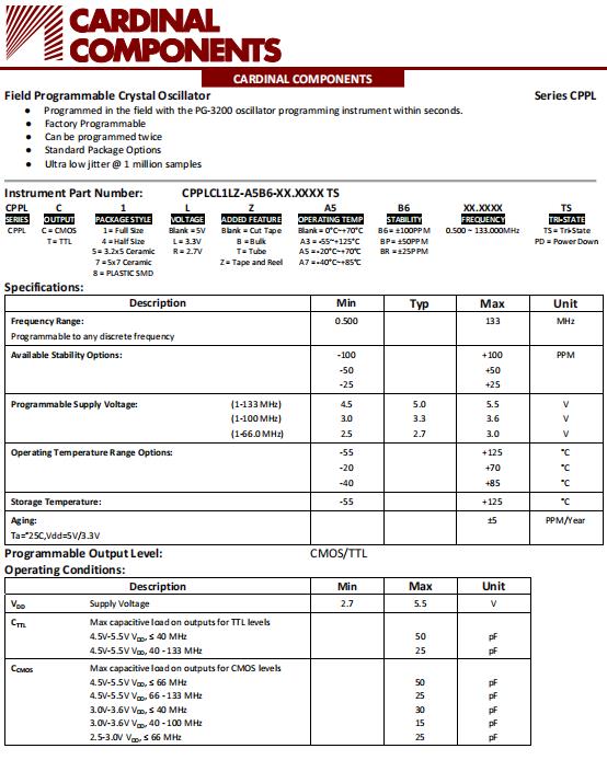 更多>>CPPLC7L-A7BR-16.0TS超低抖動的CMOS振蕩器是測試設(shè)備最佳之選