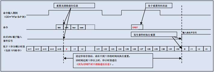執(zhí)行ERST 時(shí)不清除進(jìn)位信息,為此請(qǐng)?jiān)谠O(shè)定秒寄存器后不到 1 秒的時(shí)間內(nèi)重置低于1秒的計(jì)時(shí)器;