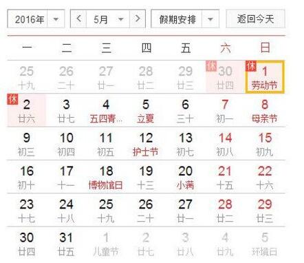 更多>>2016年五一放假公告